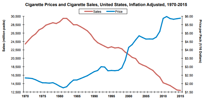 Chew on this: Since 1970, federal taxes on cigarettes have driven prices higher and higher. And here’s what happened: